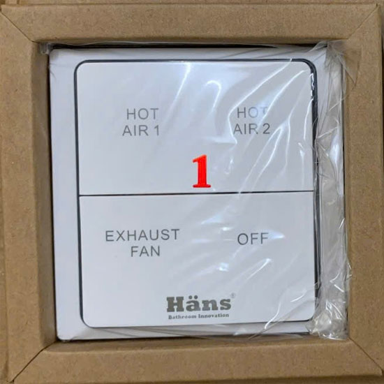 - Điều khiển từ xa có 3 nút bấm: 1 nút cho chức năng thông gió, 1 nút cho chức năng sưởi thổi (khi ấn nút chức năng nào thì chức năng kia sẽ tự động ngừng hoạt động) và 1 nút để tắt sản phẩm (nếu giữ nút này trong 5 giây, dùng để đồng bộ điều khiển từ xa và bộ nhận tín hiệu)