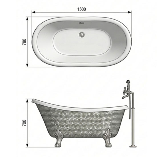 - Bồn tắm TDO với thiết kế sang trọng, độc đáo như một chiếc thuyền nhỏ nằm giữa không gian phòng tắm, cộng với độ sâu phù hợp.