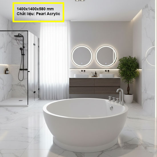 - Bồn tắm hình tròn yếm liền kích thước lớn, có thể đặt hàng theo mầu. Sản phẩm có nhiều kích thước để lựa chọn, phù hợp với nhiều không gian phòng tắm khác nhau.