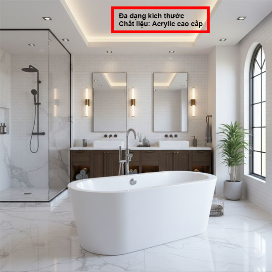 - Thân bồn được làm bằng chất liệu Acrylic, trắng sáng siêu bóng tạo vẻ sang trọng, tinh tế và dễ lau rửa vệ sinh có kết hợp với sen sả bồn trang nhã hiện đại.