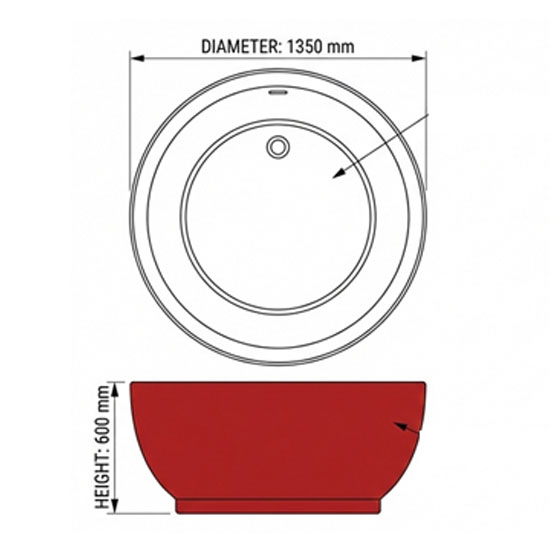 - Bồn tắm hình tròn yếm liền kích thước lớn, có thể đặt hàng theo mầu. Sản phẩm có nhiều kích thước để lựa chọn, phù hợp với nhiều không gian phòng tắm khác nhau.