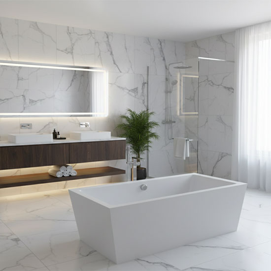 - Chất liệu bồn tắm Acrylic sang trọng, nổi bật về thẩm mỹ và tối ưu hơn về độ bền, khả năng chống xước, chống ố vàng, bám bẩn.