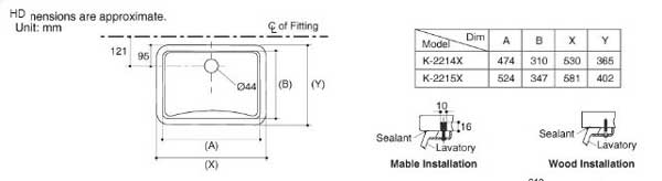 Bản vẽ chậu rửa lavabo Kohler K-2215X-0 âm bàn