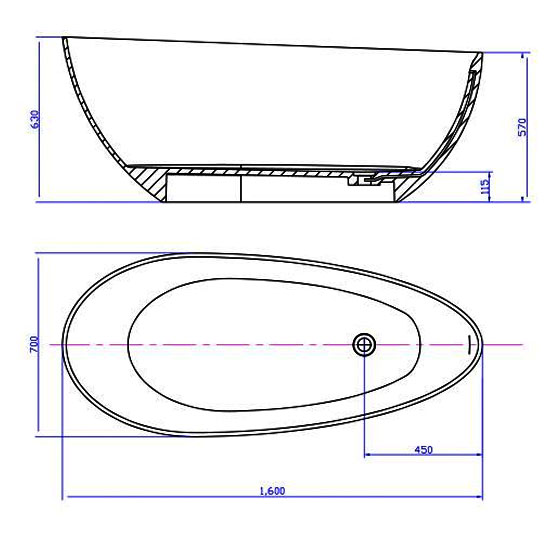 - Phần thân bồn tắm EU-65167 thon dài. Đáy nhỏ, miệng rộng tạo nên độ dốc tương đối cho bồn tắm.