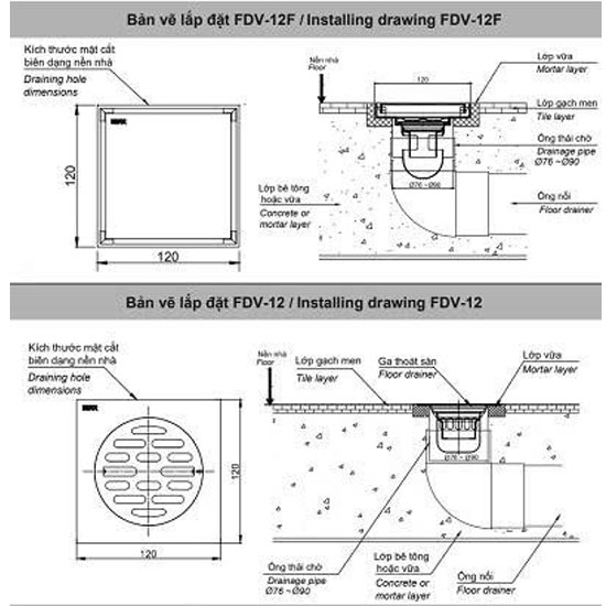 - Thoát nước sàn tắm, sàn nhà vệ sinh