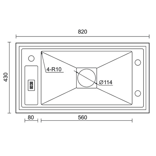 - Kích thước bồn rửa: 820 x 430 x 220 mm