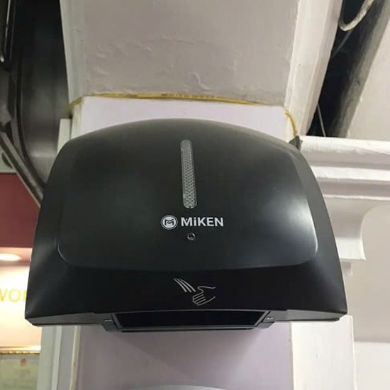 Máy sấy tay Miken là sản phẩm máy sấy tay tự động cảm ứng thông minh. Hoạt động trên nguyên tắc cảm biến hồng ngoại. Máy làm khô tay nhanh chóng bằng luồng gió với tốc độ cao kết hợp nhiệt sấy. Để loại bỏ nước trên bề mặt da một cách nhanh chóng giúp giữ gìn vệ sinh ngay sau khi rửa tay.