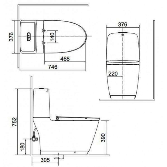 - Nắp rửa thông minh: Phun rửa đại tiện, Vệ sinh phụ nữ, Phun rửa massage, Bệ ngồi sưởi ấm, Bảng điều khiển chữ nổi, Chống khuẩn.