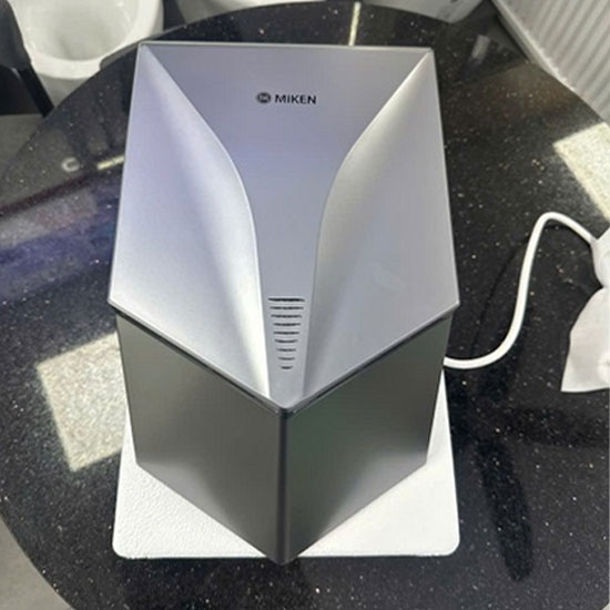 Máy sấy tay Miken là sản phẩm máy sấy tay tự động cảm ứng thông minh. Hoạt động trên nguyên tắc cảm biến hồng ngoại. Máy làm khô tay nhanh chóng bằng luồng gió với tốc độ cao kết hợp nhiệt sấy. Để loại bỏ nước trên bề mặt da một cách nhanh chóng giúp giữ gìn vệ sinh ngay sau khi rửa tay.