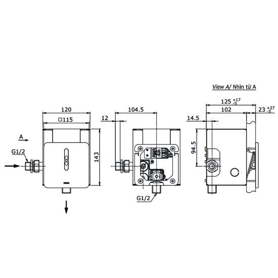 - Loại : Van xả tiểu cảm ứng bồn tiểu nam (Lắp âm tường)