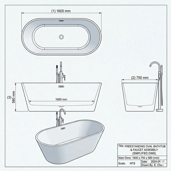 Bồn tắm Mowoen MW8201-160 cần đi với sen xả bồn đặt sàn để tạo lên một bộ sản phẩm hoàn chỉnh.