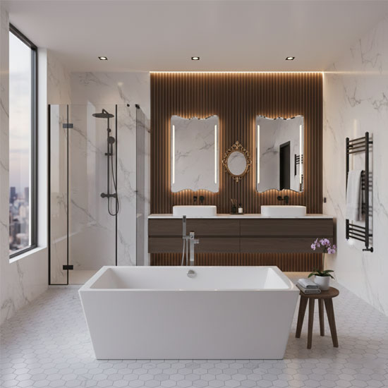 Bề mặt bồn luôn sáng bóng phản xạ ánh sáng tốt làm sáng bừng không gian.