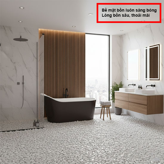 Bề mặt bồn luôn sáng bóng phản xạ ánh sáng tốt làm sáng bừng không gian.