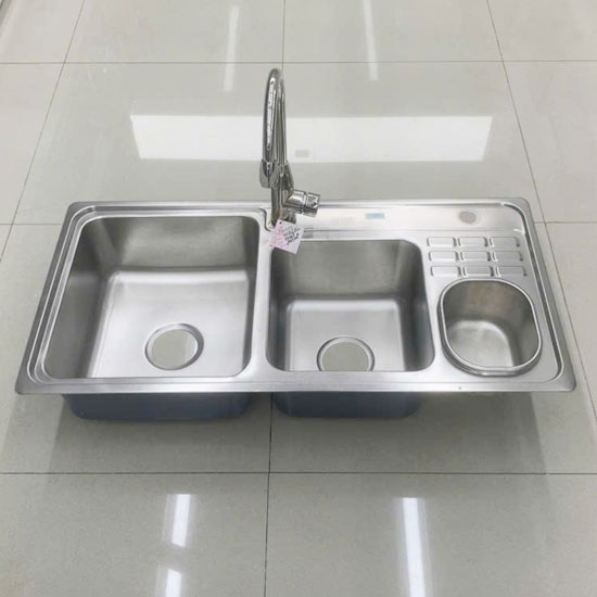 - Bầu ngăn rác Inox lớn giúp thoát nước nhanh.