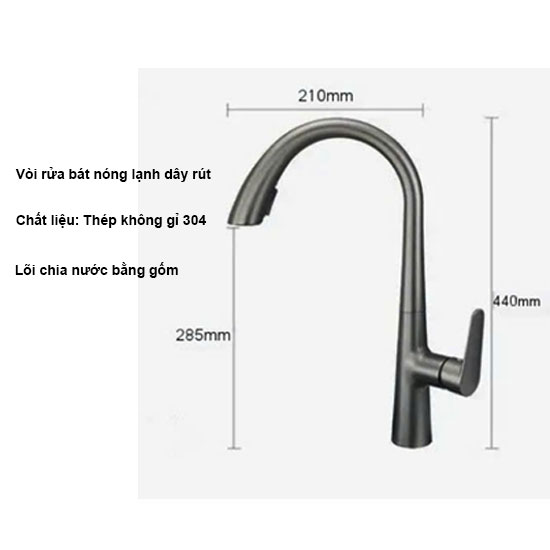 - Vòi xoay 360 độ rất linh hoạt, dây rút đầu vòi kéo dài.