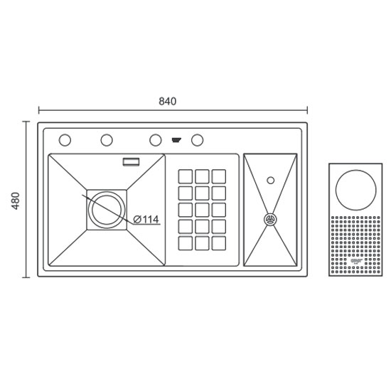 - Hệ thống xử lý nước thải tiên tiến từ bộ lọc giỏ thép không gỉ, đếm bộ hệ thống xử lý thoát nước. Đáy chậu có cấu hình thấp giúp giải phóng thêm không gian tủ bếp nhà bạn