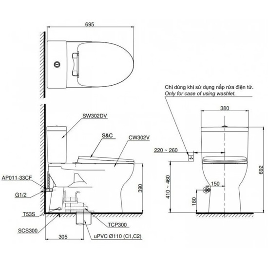 - Bồn cầu điện tử TOTO CS302DW18