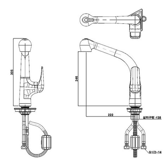 - Vòi dây rút giúp tiện lợi khi sử dụng trong bếp
