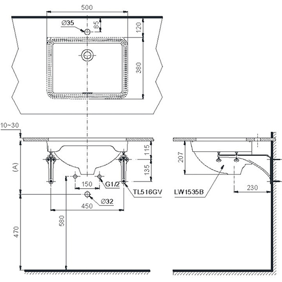 Chậu lavabo TOTO LW1535V/TL516GV âm bàn