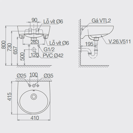 Đặc điểm Chậu lavabo Viglacera V511 treo tường