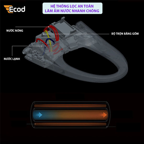 - Hệ thống lọc an toàn, làm ấm nước nhanh chóng