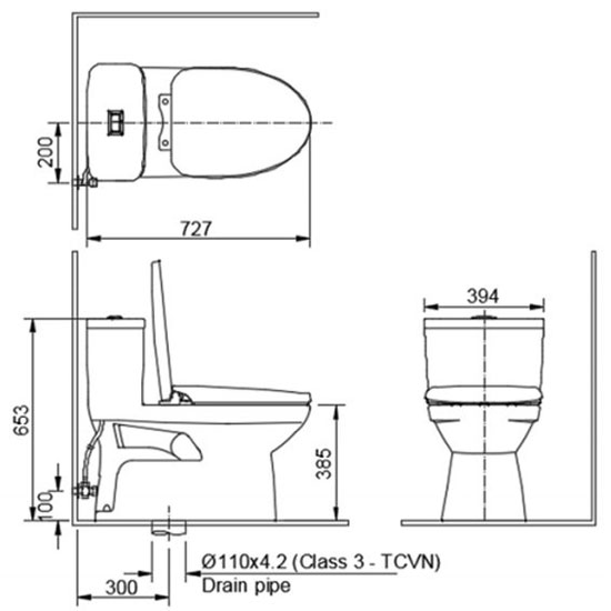 - Tâm thoát bồn cầu : 300mm (+-5)