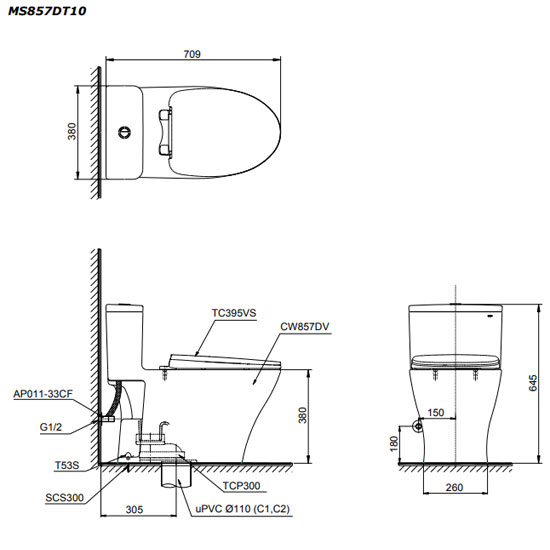 Bồn cầu Toto MS857DT10 nắp đóng êm TC395VS