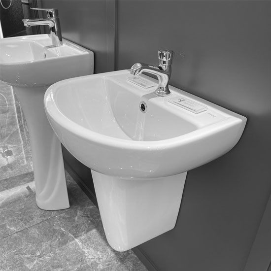 Chậu rửa lavabo JOMOO 12808-1/11P-I011 treo tường chân lửng thiết kế nhỏ gọn với kiểu dáng sang trọng, thích hợp cho mọi không gian phòng tắm đặc biệt là phòng tắm có diện tích nhỏ.