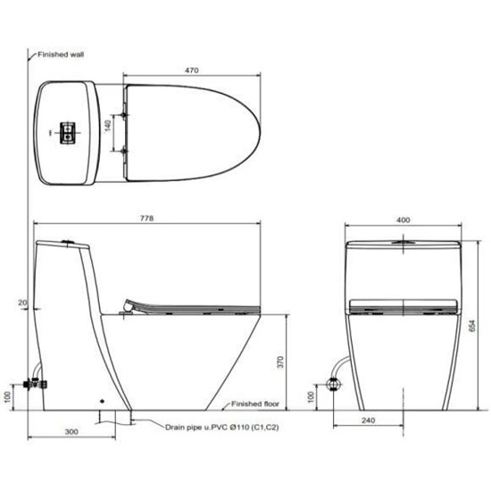- Tâm thoát bồn cầu : 300mm (+-5)