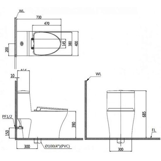 - Áp lực nước: 0.7-5 kgf/cm² (0.07-0.5MPa)