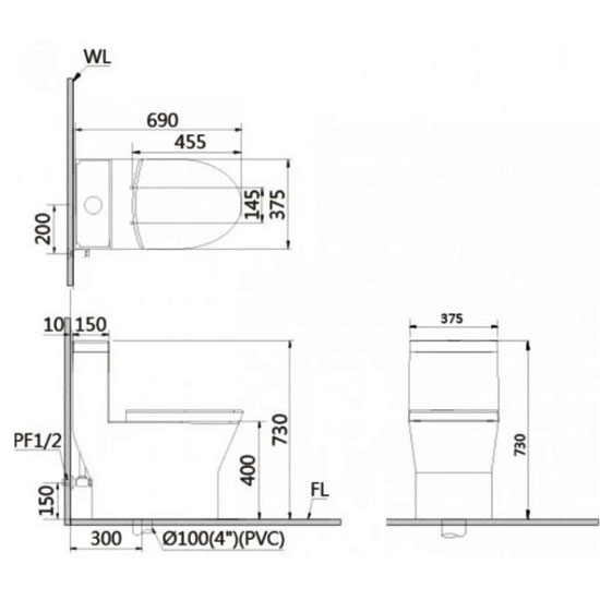 - Áp lực nước: 0.7-5 kgf/cm² (0.07-0.5MPa)