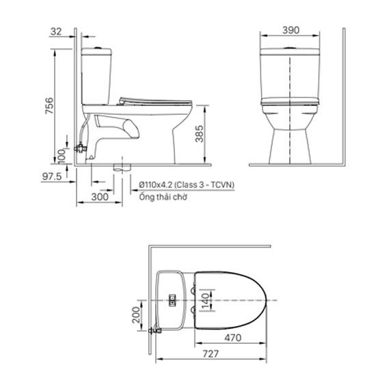 - Bồn cầu Inax AC-504A+CW-S15VN nắp rửa cơ