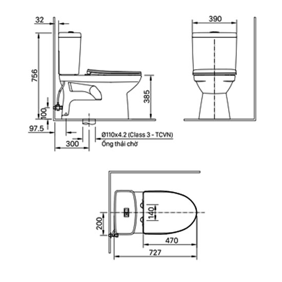 - Bồn cầu Inax C-504A+CW-S15VN nắp rửa cơ