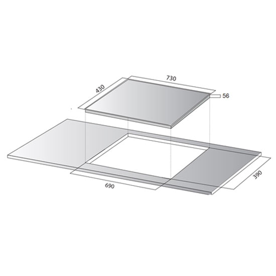 - Kích thước (dài x rộng x cao): 730x430x56 mm