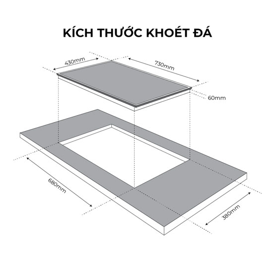 - Kích thước (dài x rộng x cao): 730x430x60mm