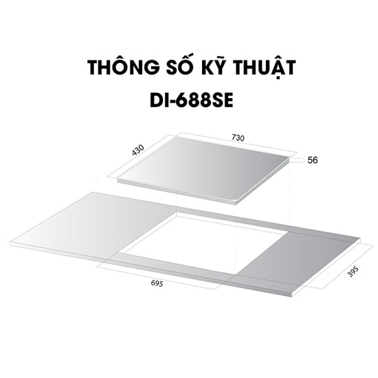 - Kích thước khoét lỗ: 695x395 (mm)