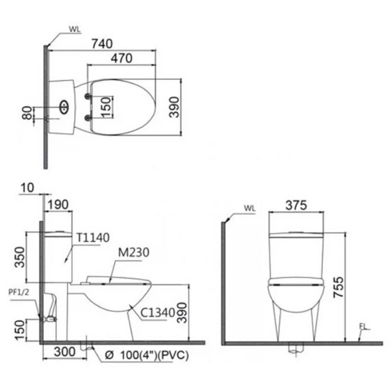 - Bề mặt bồn cầu ít góc cạnh giúp dễ vệ sinh, hạn chế bám bẩn