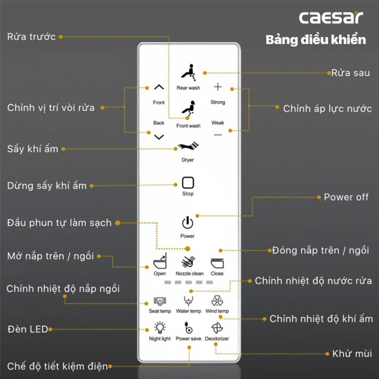 - Vặn sau: Chế độ rửa sau, phun rửa sau auto + sấy khô