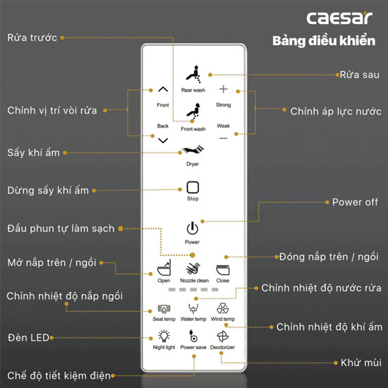- Vặn sau: Chế độ rửa sau, phun rửa sau auto + sấy khô