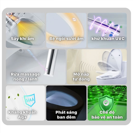 - Bệ ngồi sưởi ấm : 4 chế độ