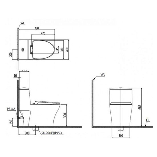 - Kích thước: 730 x 400 x 685 mm (DxRxC)