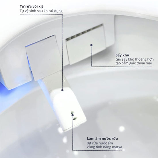 - Chức năng làm ấm nắp ngồi, làm ấm nước rửa.