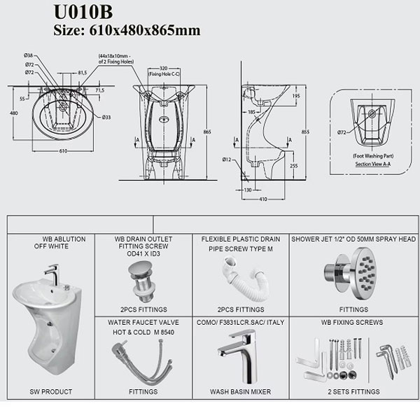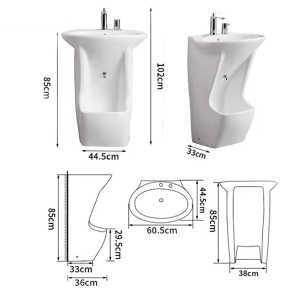 Bồn tiểu nam liền chậu lavabo Sewo SW-U010B là thiết bị vệ sinh tích hợp giữa bồn tiểu nam và chậu rửa tay (lavabo) trong cùng một khối, thường được dùng trong các công trình hiện đại nhằm tiết kiệm không gian, tăng tính thẩm mỹ và tối ưu hóa hệ thống cấp thoát nước.