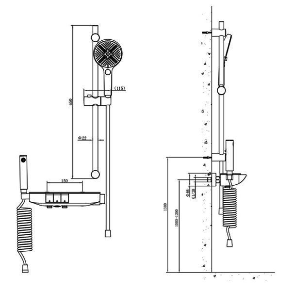 - Đường kính ngoài của vòi sen cầm tay: φ120 mm