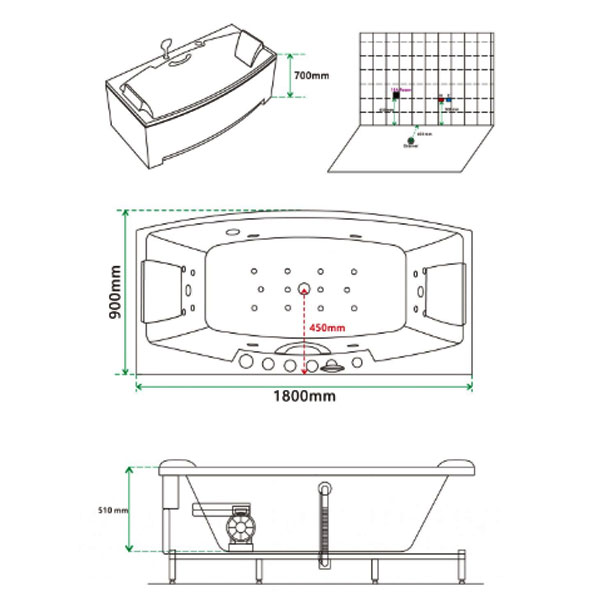 - Bảng điều khiển hiện đại: Cho phép bạn dễ dàng điều chỉnh các chức năng của bồn tắm.
