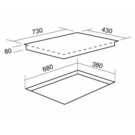 - Kích thước khoét đá: R680 x S380 (mm)