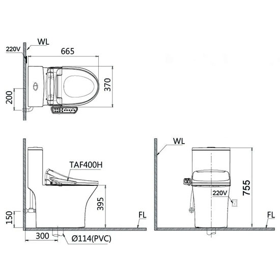 Đặc điểm Bồn cầu Caesar C1391F+TAF400H nắp điện tử