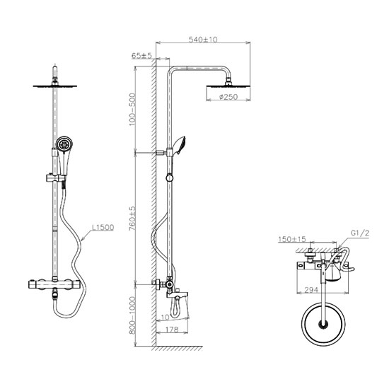 - Thiết kế: Bộ sen cây tắm đứng nhiệt độ 2 bát sen