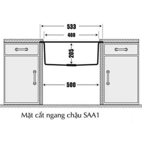 - Kích thước cắt đá lắp nổi đề xuất: 513x437mm (DxR)
