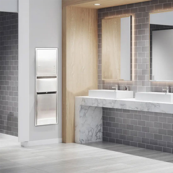 - Lắp đặt 1 hộp đựng giấy với 2 công năng: Hộc trên đựng giấy đi kèm hộc dưới đựng thùng rác.